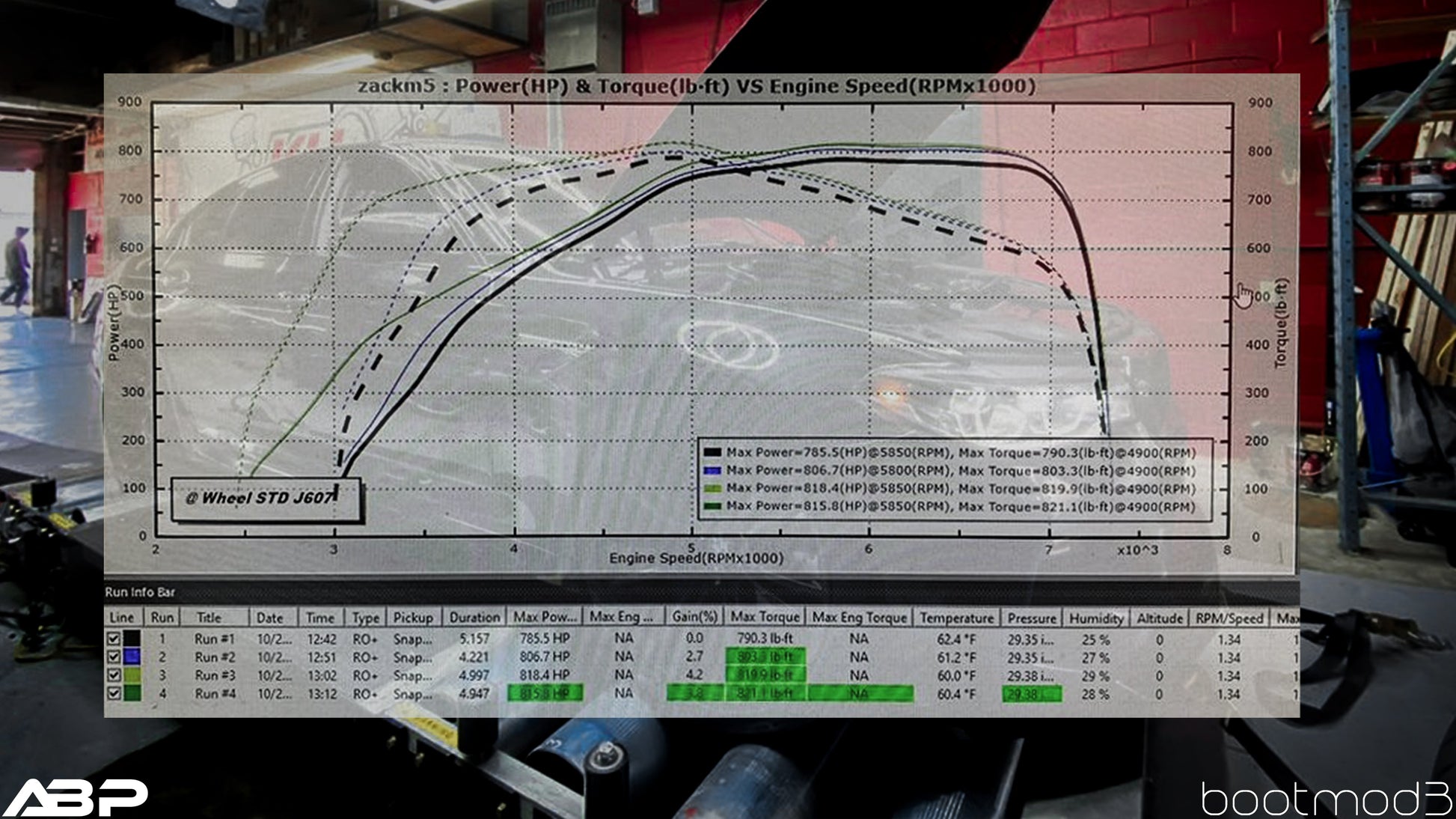 BMW S63T4 Engine found in F90 M5 F92 M8 F95 X5M and F96 X6M can produce up to 950+HP and 1400+NM with factory turbochargers. You are not able to max out stock turbos with stock bottom end rotating assembly because of factory con-rods being limitation with these engines. It is very important to keep torque curve in check. We use our proven strategy on over 100+ M5’s tuned globally. All the torque and HP is moved up top to keep the factory con-rods healthy. Also this is the reason why you do not want to go with upgraded turbos with the stock engine unlike its smaller 6 cylinder brothers.